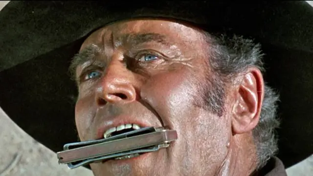 موسیقی متن این فیلم که از آثار برجسته سرجیو لئونه استاد وسترن اسپاگتی است، خیلی آرام شروع می شود و تمام ده دقیقه اول فیلم که سه ششلول بند در یک ایستگاه خلوت و خاکی منتظر از راه رسیدن قطار هستند، ادامه می یابد. اما وقتیکه این موسیقی گرم می شود و اوج می گیرد واقعا اوج می گیرد.