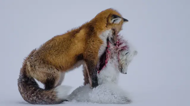 صحنهای که روباهی در حال خوردن روباهی دیگر است جایزه بهترین عکس حیات وحش سال را به دست آورد.