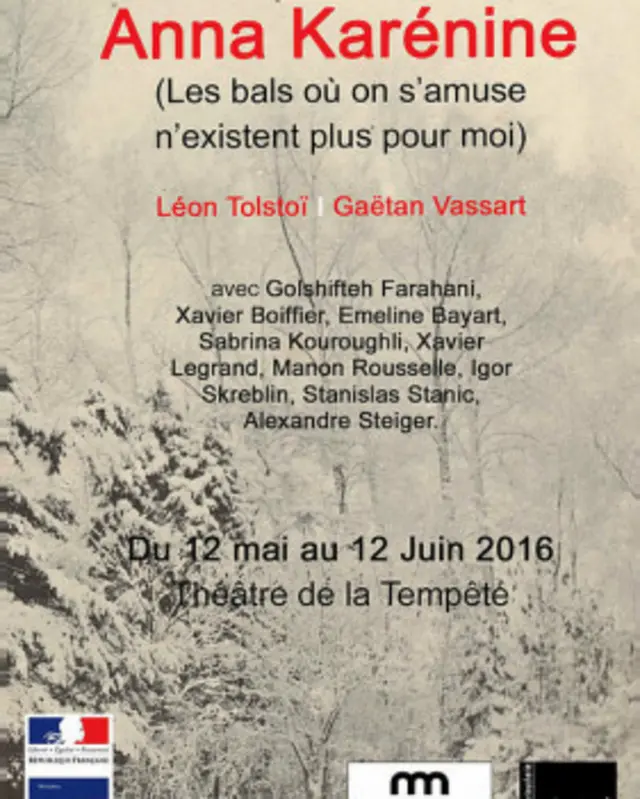 این نمایش از ۱۲ مه تا ۱۲ ژوئن در سالن <link type="page"><caption> تئاتر دو لا تامپت</caption><url href="http://www.la-tempete.fr/index.php5?menu=5&saison=saison+2015%2F2016&fiche_spectacle=2576&presentation=1&diaporama=1" platform="highweb"/></link> با کارگردانی گائتان واسار روی صحنه میرود.