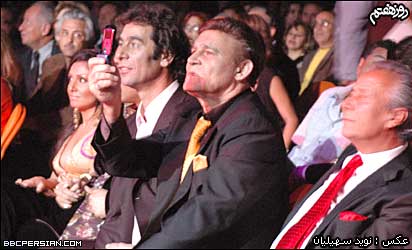 گوگوش ضمن قدردانی از زحمات مهرداد که به گفته او در اين مدت "يار" او بوده و "بهترين ها" رو به او هديه کرده، از او دعوت کرد که به روی صحنه بياد و ترانه های دو صدايی را با هم اجرا کنند. | | مهرداد آسمانی به همراه همسرش در کنسرت لس آنجلس |