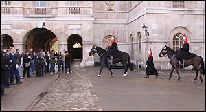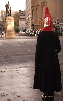 پادگان گارد سواره ملکه در خيابان وايت هال کنار دفتر نخست وزيری و در نزديکی ساختمان پارلمان و پارک سن جيمز قرار دارد. رژه گارد سواره ملکه از ميانه قرن هجدهم به منظور حافظت از خانواده سلطنتی شکل گرفت ولی اکنون فعاليتش بيشتر جنبه نمادين دارد.
