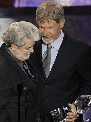 هريسون فورد، از بازيگران نخستين قسمت جنگ ستارگان، جايزه بهترين فيلم انتخاب مردم را به جورج لوکاس کارگردان فيلم جنگ ستارگان، انتقام سيت می دهد