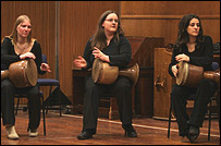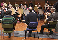 کارگاه نواختن سازهای کوبه ای ايرانی برای علاقه مندان که بعد از ظهر چهارشنبه برگزار شد با استقبال حاضران روبرو شد. ابتدا به حاضران نحوه در دست گرفتن اين سازها از جمله، تمبک، دف، دمام، نقاره و دهل و سپس گفته شد و سپس اعضای گروه دستان با چند تن از نوازندگان غير ايرانی قطعاتی اجرا کردند که با سازهای ضربی حاضران که چند ريتم به آنها آموزش داده شده بود، همراهی شد. به جز اين کارگاه، در برنامه ای ديگر چند نوازنده سازهای زهی ارکستر بی بی سی با رهبری سعيد فرج پوری، گوشه هايی از موسيقی ايرانی را از جمله، کرشمه، نغمه و چهارپاره اجرا کردند. اجرای موسيقی گروه زيرزمينی "يک مشت بچه خارجی" متشکل از چند نوازنده جوان ايرانی مقيم لندن که کارشان ترکيبی از موسيقی سنتی و پاپ غربی است از ديگر برنامه روز جمعه است. کنسرت روز جمعه که در ساعت هفت بعدازظهر اجرا خواهد شد، 55 دقيقه خواهد بود و ديدن از آن رايگان است.