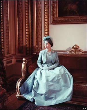 ملکه اليزابت دوم در مراسم ازدواج شاهزاده مارگارت در کاخ باکينگهام - عکس از سسيل بيتون.