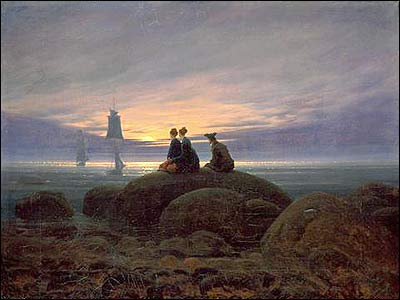 تابلوی "طلوع ماه در کنار دريا" اثر کاسپار داويد فريدريش که در سال 1822 خاق شده و احساسات ماليخوليايی را در فضای دلتنگ کننده طبيعت به تصوير کشيده است.