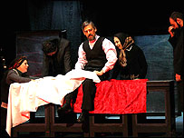 بازی ها در فضای واقعگرایانه نمایش خوب ارائه می شود، ولی انتقال آن به فضای فراواقعگرایانه و گروتسک ( مضحکه عجیب وغریب و ترسناک) به خوبی انجام نمی شود و شکل لازمه را به خود نمی گیرد، ولی موقعیت پیشنهادی نمایش و روند طی داستان نمایش تازه ست. در این نمایش ناصر عرفانیان در نقش (آقاجون)، مجید جعفری در نقش های (عمو- |