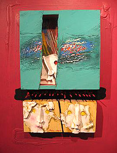سحابی در کولاژهايش با ديد اجتماعی کار کرده است