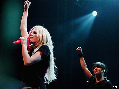 آوریل لاوین، خواننده کانادایی در حین اجرای برنامه در کنسرت شانگهای