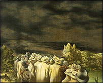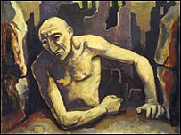 تابلوی "انتظار" از ریشارد اولتس (۱۹۳۶) نمونه ای جالب از سوءظن فاشیسم را نسبت به ابهام و پیچیدگی نشان می دهد. اولتس هنرمندی مستقل بود که به مکتب سوررئالیسم پیوسته بود. تابلوی انتظار فضایی مرموز و وهم آلود را تصویر می کند، که می تواند به خلجان ها یا تنش های ضمیر ناخودآگاه برگردد. آلمان نازی آینده ای درخشان و تابناک را نوید می داد، اما در این تابلو این جمع خاموش و ناشناخته به کجا خیره شده اند؟ تابلوی "قدرت کور" از رودولف شلیشتر، نیز پاسخی کمابیش سرراست به تبلیغات حزب نازی است. ایدئولوژی نازی لاف می زد که بر قله دستاوردهای بشری اروپا از زمان تمدن روم تا کنون، ایستاده است، و تابلو می گوید که امروز میراث این تمدن به یک جنگجوی رومی کاهش یافته که جز مرگ و ویرانگری چیزی نمی شناسد. تابلوی "انسان در ویرانهها" اثر کارل هوفر را هم می توان ادامه تابلوی "قدرت کور" دانست و هم تعریضی روشن به ایدئولوژی "رایش سوم". هیتلر و پیروان او بزرگترین ماشین جنگی تاریخ را برای رسیدن به جامعه ای آرمانی به راه انداخته بودند، اما نقاش به سادگی مقصد نهایی این سفر جهنمی را نشان می دهد: انسانی برهنه که در میان ویرانه ها تنها مانده است. چهره های گوناگون فاشیسم در حاشیه نمایشگاه نگاهی هست به چهره های دیگر سلطه فاشیسم در اروپا و برخورد ویرانگر آن با هنر مدرن از اتحاد شوروی سابق تا اسپانیا و ایتالیا...