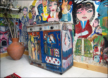 مکرمه همه جا حتی روی وسایل آشپزخانه نیز نقاشی می کرد
