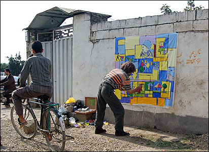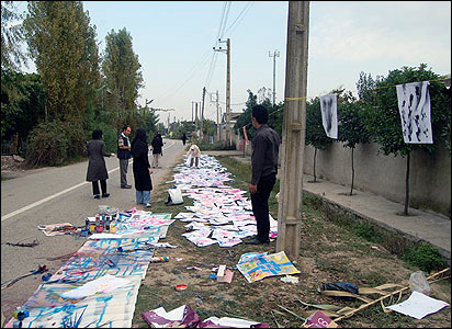 گروه حجم سبز مسیر منزل مکرمه قنبری را از ابتدای جاده با ریسمانی از نقاشی مشخص کرد |