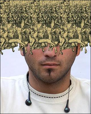 در شرق سکوت، عکس آدم ها برروی قاب های مینیاتور قرار گرفته است. به گفته عکاس، منظور او از این کار نشان پس زمینه فرهنگی، جوان امروز ایرانی است.