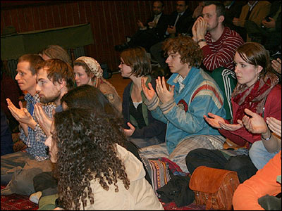 شرکت کنندگان در کنسرت، به همراه گروه قوالی "الله هو، الله هو" می کردند و کف می زدند |