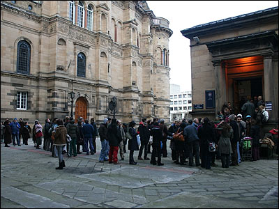 صف طویلی در برابر سالن محل برگزاری کنسرت تشکیل شده بود