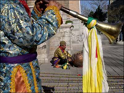بسیاری از اقوام محلی ایران زمين با نواختن سازهای بادی سرنا و کرنا همراه با سازهای ضربی نقاره و دهل آغاز سال نو را اعلام می کنند. میراثی شفاهی که از ده ها قرن گذشتت، سینه به سینه منتقل شده است. تصاویر زیر از مراسمی است که به همت سازمان میراث فرهنگی در کنار سر در باغ ملی برگزار شد و نوازنده هایی از استان فارس و گیلان با سازهای خود، نواهای نوروزی نواختند.