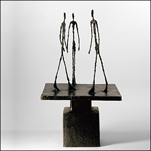 ساتبی می گوید این آدمکهای ناشناس در مجسمه "سه مرد در حال قدم زدن" اثر آلبرتو جاکومتی ( 1966-1901) حکایت از دغدغه های اگزیستانسیالیستی اين هنرمند سوئیسی دارد.