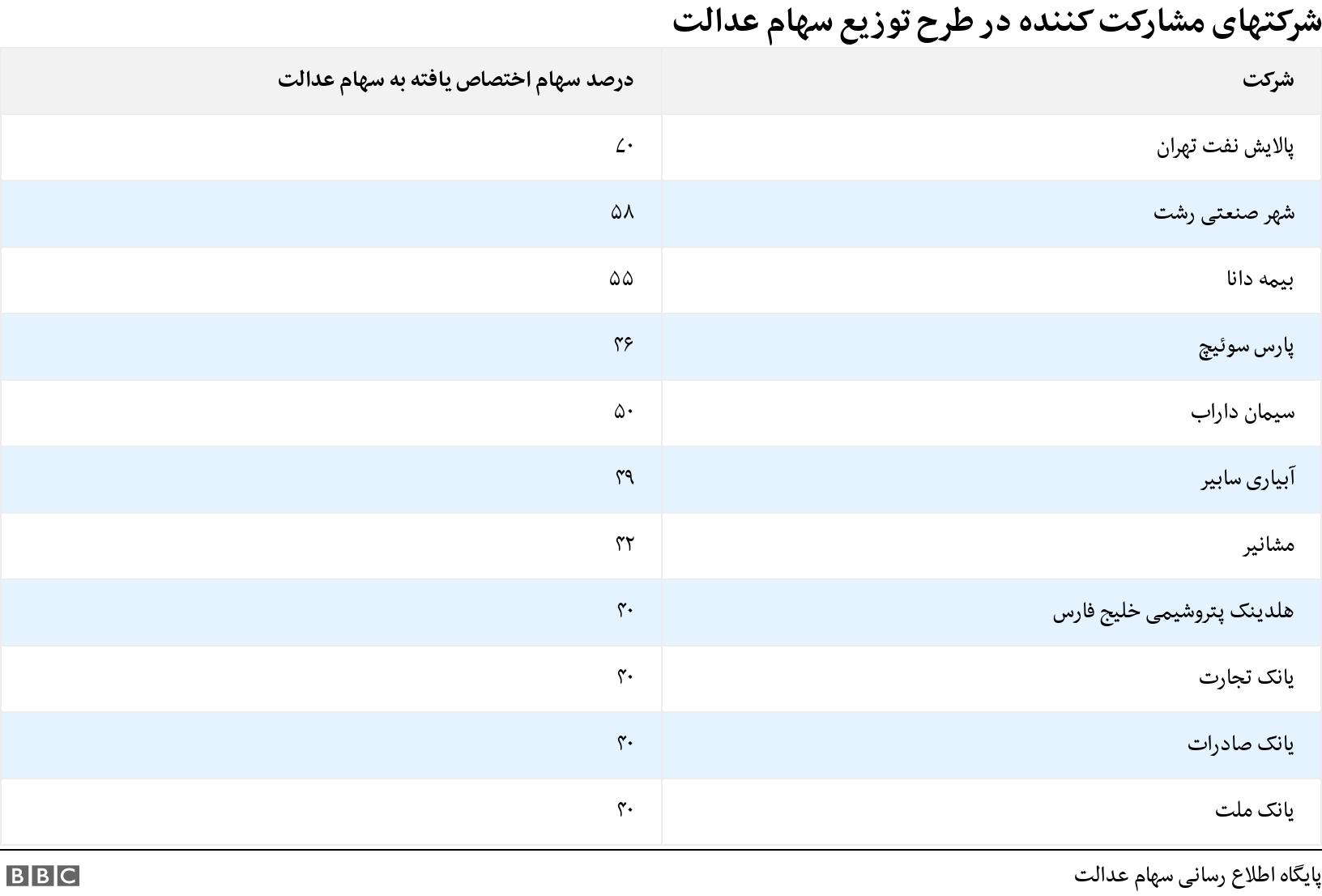 بالاترین سهام اختصاص یافته به سهام عدالت در میان این شرکتها شرکت پالایش نفت تهران است. (۷۰ درصد)