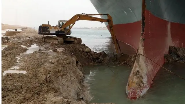 این کشتی در باریکترین قسمت کانال در ورودی آن از سمت دریای سرخ گیر افتاده است.