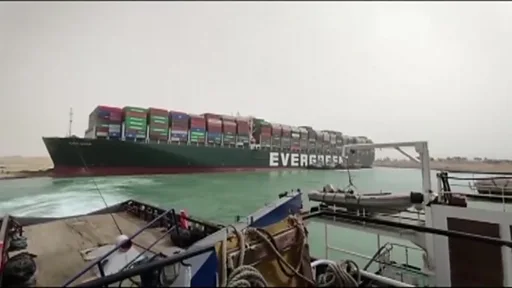 کشتی "اِوِر گوین" که در پاناما ثبت شده از چین به شهر بندری روتردام هلند میرفت و سعی داشت وارد مدیترانه شود که گیر افتاد.