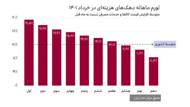 بررسیهای مرکز آمار ایران نشان میدهد خردادماه امسال نرخ تورم ماهانه برای کمدرآمدترین دهک بیشتر از دو برابر پردرآمدترین دهک جامعه بوده است.