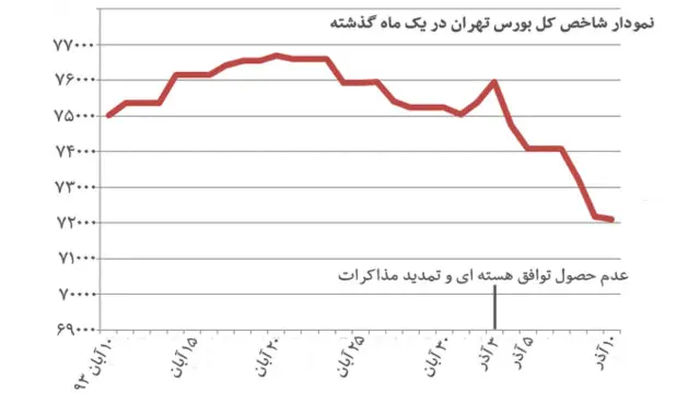 کارشناسان بازارهای مالی ایران معتقد بودند که حس بی ثباتی ناشی از ، افزایش بهایارزهای خارجی و مبهم ماندن نتیجه مذاکرات اتمی ایران و قدرتهای جهانی که به معنای تداوم تحریم های اقتصادی است، عوامل اصلی افت بازار سهام بوده است.