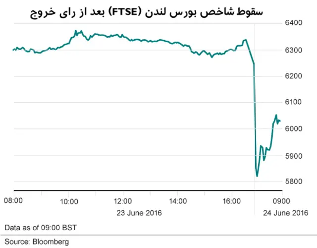 شاخص بورس لندن شاهد بیشترین سقوط یک روزه از زمان اوج بحران مالی جهانی در پاییز سال ۲۰۰۸ بود.