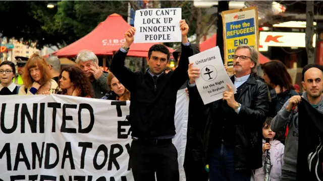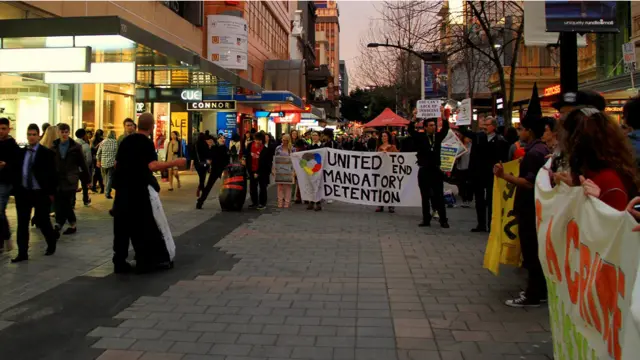 الیاس این عکس ها را برای شاهد عینی ارسال کرده است. در توضیح نوشته: " جمعه ، ششم سپتامبر ۱۳ ۲۰ عده ای از مردم آدلاید در مخالفت با قوانین شدید احزاب سیاسی استرالیا نسبت به پناهجویان، تظاهراتی را برگزار کردند.''
