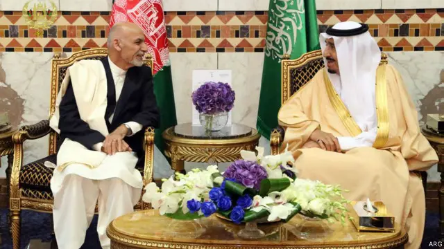 اشرف غنی، رئیس جمهوری افغانستان، از زمان روی کار آمدن دولت وحدت ملی، رابطه نزدیکی با عربستان سعودی برقرار کرده و در شش ماه اول رهبریاش، سه بار به این کشور سفر کرده است. آقای غنی امیدوار است حمایت عربستان سعودی را از برنامه صلح کشورش با گروه شورشی طالبان جلب کند. عربستان، در کنار امارات متحده عربی و پاکستان، تنها سه کشوری بودند که رژیم طالبان در افغانستان را به رسمیت می شناختند، اما درعین حال، از حمله ائتلاف بین المللی تحت فرمان آمریکا که به سرنگونی این رژیم انجامید هم حمایت کردند.