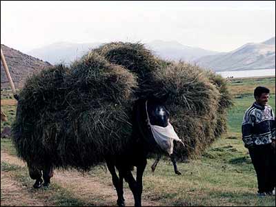 جمع آوری بسته های علوفه با اسب و..و انتقال آنها به نزديکی ماشين