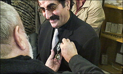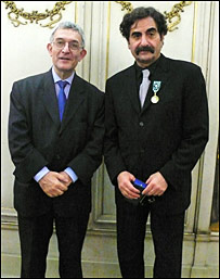 ممکن است درباره مدال بیشتر صحبت کنید. این مدال، یک مدال و نشان رسمی فرانسه است و غیر از مدال یک نشان کوچکی هست که میشود بر یقه زد. نشانی که احترام زیادی دارد و به طور مثال اگر این مدال را به همراه داشته باشید، اگر یک نظامی فرانسوی شما را ببیند، به شما سلام نظامی می دهد. گرفتن این نشان بسیار سخت است، چون مراحل زیادی برای دریافت این نشان وجود دارد و باید از صافی های دولتی و هنری بگذرد و بعد تحقیق بسیار این نشان را به هنرمندان اهدا می کنند.
