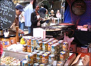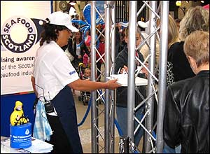 | | فروشنده نمونه غذای طبخ شده را به مشتريان ارائه ميکند |