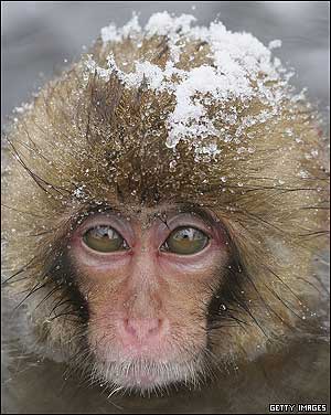 ميمون های ژاپنی موسوم به 'ماکاک' در چشمه آب داغ در منطقه جيگوکودانی ژاپن که امسال در آن برف بی سابقه ای باريده است. از اين ميمون ها با نام ميمون های برفی هم ياد می شود. در سال 1963 يک ماکاک ماده برای گرفتن چند دانه لوبيای سويا وارد اين چشمه آب داغ شد. اين رفتار را ساير ميمون ها تقليد کردند و سرانجام همه جمعيت اين ميمون ها اين کار را ياد گرفتند. اکنون آنها برای فرار از هوای سرد خود را به آب داغ چشمه می زنند. گفته می شود که آب اين چشمه برای درمان دردهای عصبی و خستگی مفيد است. |