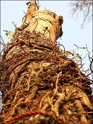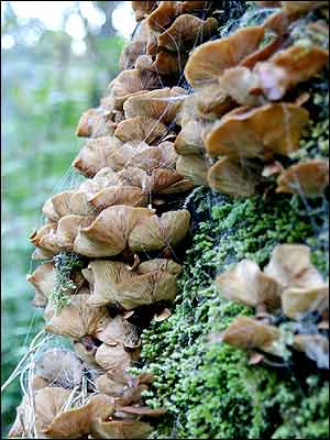تارهای عنکبوت همانطوری که قارچها سطح درخت را فرا گرفته، آن را پوشانده اند، ماسوله