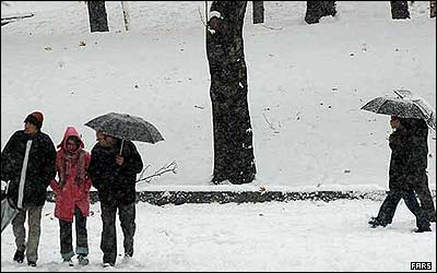 بارش برف تهران را سفيد پوش كرده است. بارش شديد برف در پهنه وسيعی از ايران باعث بسته شدن راهها و تعطيلی مدارس در بسياری نقاط اين کشور شده و باران سنگين در جنوب اين کشور چند شهر را دستخوش سيل کرده و زندگی روزمره را مختل کرده است.