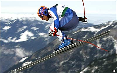 يانک برتران اهل فرانسه در حال تمرين اسکی به پيشواز جام جهانی اسکی مردان که در سوئيس برگزار می شود، می رود.
