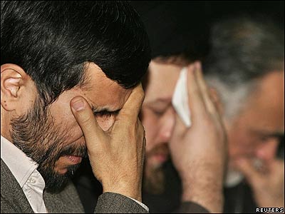 احمدی نژاد رييس جمهور ايران در بازديد از محل دفن آيت الله خمينی بنيان گذار جمهوری اسلامی