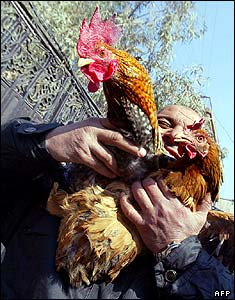 يک مرد عراقی دو خروس در يکی از بازارهای شهر بغداد عراق خريده است. قيمت مرغ و خروس در پی شيوع ويروس آنفولانزای مرغی در شمال اين کشور که يک قربانی گرفته، از ده هزار دينار (حدود هفت دلار) به دو هزار دينار (حدود يک و سه دلار) کاهش يافته است.
