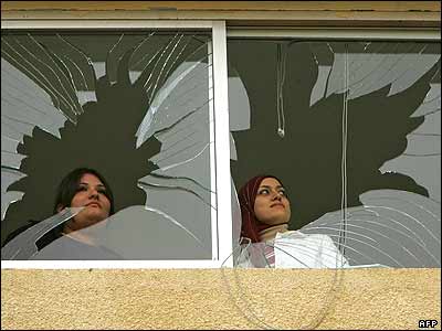 دانش آموزان، دانشگاه بيروت در لبنان، از پنجره های با شيشه شکسته به بيرون نگاه می کنند. انفجاری در يک پادگان نظامی در نزديک دانشگاه لبنان باعث ويرانی های زيادی شد اما پليس می گويد انفجار تلفات جانی نداشته است.