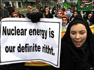 دختران ايرانی در حال تظاهرات در پشتيبانی از برنامه هسته ای ايران، در تهران.