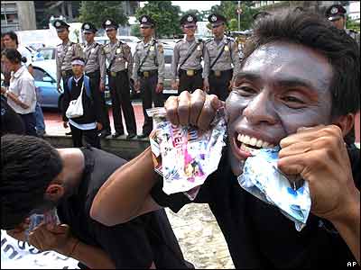 در اندونزی حدود دويست تن از دانشجويان مدارس اسلامی به خيابان ها ريختند و برضد انتشار تصاوير و ويديوهای منافی اخلاق عمومی اعتراض کردند. دانشجويان با چنگ و دندان، اين عکسها را پاره کردند.