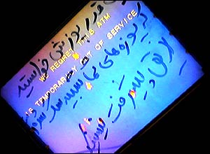 | | يک دستگاه خود پرداز که خراب شده است و بر روی آن بد و بيراه نوشته اند |