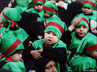 زنان شيعه عراقی با کودکانشان در کربلا مراسم محرم را برگزار می کنند.