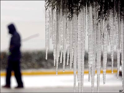 عابری پياده در يک روز بسيار سرد يخی در شمال شهر آتن يونان.