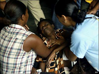 کارکنان یک حوزه انتخاباتی در پورت و پرنس پايتخت هاييتی به زنی که در هنگام رای دادن در انتخابات رياست جمهوری از حال رفته بود، کمک می کنند.