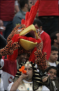 تماشاچی های مصری در استاديوم بين المللی قاهره تيم فوتبال مصر را در يک بازی با سنگال تشويق می کنند.