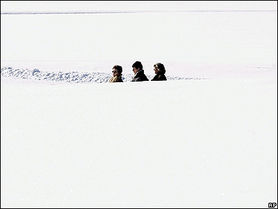 سه زن در حال پياده روی در نزديکی شهر سالزبورگ اطريش. بارش برف سنگين هنوز بعضی از شهرهای مختلف اروپا را زير پوشش خود قرار داده است.
