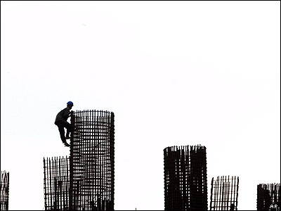 کارگر ساختمانی، از اسکلت يک ساختمان نيمه کاره در شهر جاکارتا، پاتخت اندونزی، بالا می رود. ساختمان سازی از نشانه های پيشرفت اقتصادی اين کشور است.
