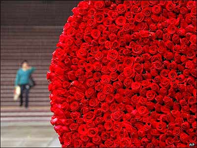 به مناسبت روز والنتاين، 'روز عشاق'، مقابل يک مرکز خريد در هنگ کنگ، دست گلی به شکل قلب گذاشته شده است.