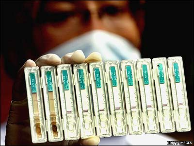 يک کارمند سازمان بهداشت در جاکارتا نتيجه مثبت يک آزمايش برای آلودگی به آنفولانزای مرغی را نشان می دهد. شيوع آنفولانزای مرغی در اندونزی دو قربانی بر جای گذاشته است.