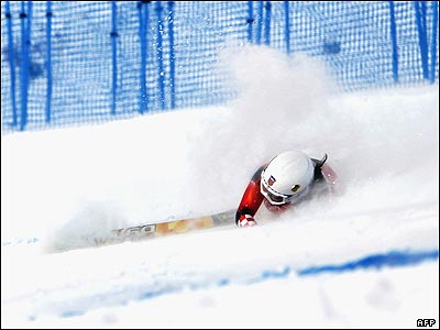نيکا فلايس از کرواسی، اولين مسابقه دهنده امروز در مسابقات اسکی سرعت المپيک زنان در شهر سن سيکاريو ايتاليا.